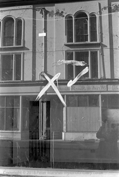 I had for some years been intrigued by reflections and taken many photographs with them, perhaps encouraged in particular by a number of pictures by Lee Friedlander. Few of them hold a great deal of interest for me now, though sometimes others seem to like them. Here the white-washed cross and tick form a separate layer on top of what seems at first glance simply a not very clear view of the front of a house.