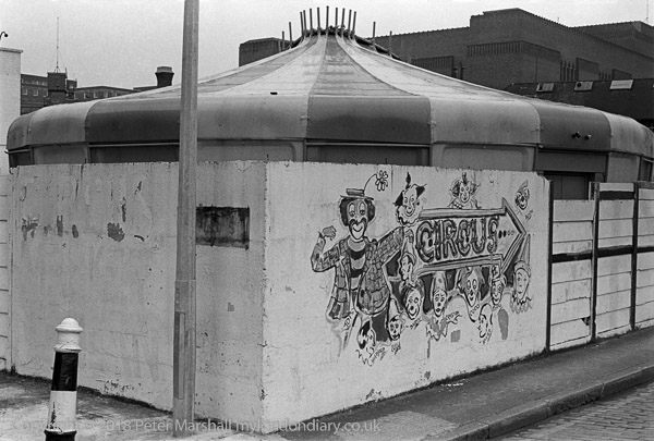 Temporary Globe Theatre, Bankside, Southwark, 1978 14u33: Southwark, theatre, power station, works,