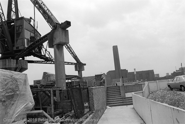 Trig Lane is now a short private street off Broken Wharf, a street leading from High Timber St to the south from Queen Victoria St. Broken Wharf leads to the riverside Paul's Walk and I presume the crane at the left of my picture is on Broken Wharf. The area to the right of the picture would then be where extensive archaeological excavations were carried from 1974-6 on this part of London's medieval waterfront, with a report published by the London and Middlesex Archaeological Society in 1982.