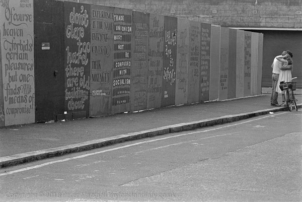 Building site with couple embracing, Covent Garden, 1978 15m44: Westminster, quotations, building site,couple, embrace, bicycle