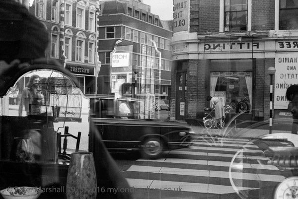 16s41: shop, reflection,Haringey, mirror, birdcage,