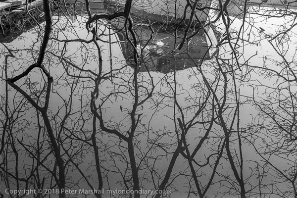 Another picture from the same walk in Twickenham, with branches and their reflections combining to form a screen through which we appear to see the river and the moored boats at the top of the picture. Its an image which plays with space in a way that interested me, and which I still find difficult to resolve.