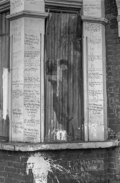 Writing by window, St Agnes's Place, Kennington, Lambeth, 1979 19h-25: house, decoration, writing,