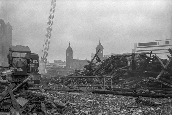 Demolition West Kent & Hibernia Wharves, Southwark, 1979 19i-41: rubble, Cannon St, bridge, wharf, Hibernia,