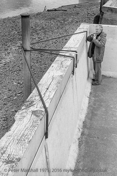 Temporary river wall, Bankside, Southwark,1979 19j-43: river thames, foreshore, wall, Randall Webb, photographer