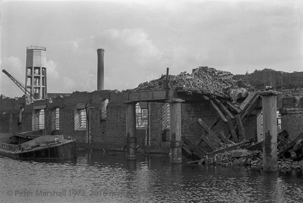 Coal Drop, regents Canal, Camden, 1979 19z-22: canal, demolition, coal drop, bridge, water tower,, barge
