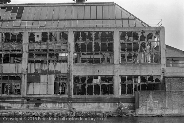 Derelict Works, Wharf Rd, Regents Canal, Hackney, 1979 20n-33: works, derelict, canal,