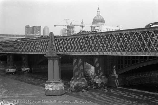 Blackfriars Rail Bridge, Southwark, City 1979 20p-61: River Thames, river, bridge, St Paul's Cathedral, offices, railway,