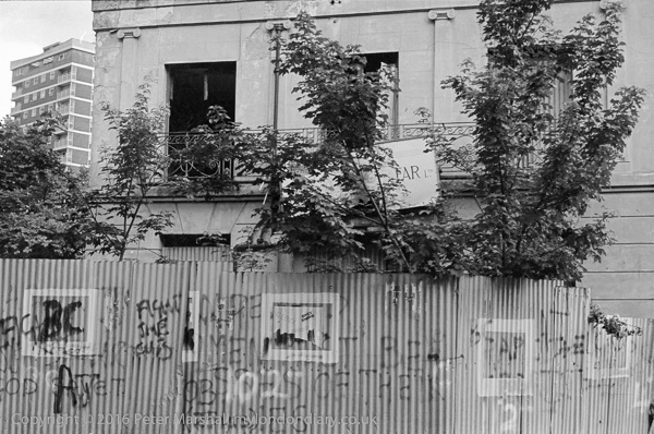 House undergoing refurbishment, Lansdowne Drive, London Fields, Hackney, 1979 20y-11: house, derelict, fence