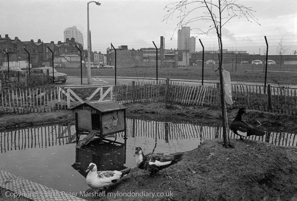 Duck pond, Vauxhall City Farm, Vauxhall, Lambeth. 1980
