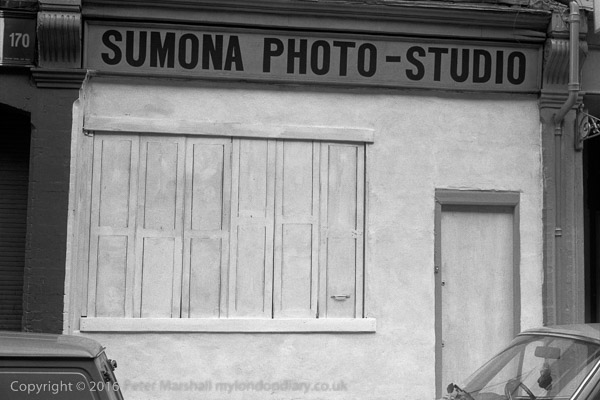 Sumona Photo-Studio, Brick Lane, Whitechapel, Tower Hamlets. 1980 24n-12: shop, shop front