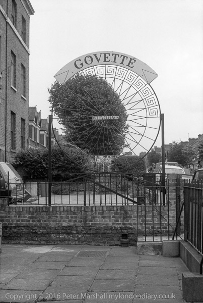 Govette Metal & Glass Works, Park Hill, Clapham, Lambeth. 1980 24y-53: children, swings, dog,