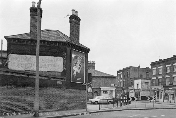 The large advertising board on the side has gone, and the painted sign on the house wall, which I think read KODAK ILFORD OSRAM LAMPS has I think faded beyond legibility or been painted over, but fading has also revealed two lines of writing in the darker area above, perhaps ..OOLLONS.