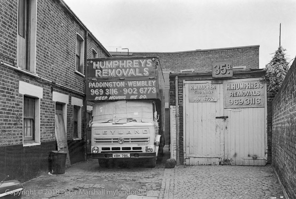 Although H Humphreys Removals may well be long removed (and seem to have disappeared without trace), this small yard on the edge of Kilburn Lane remains, though No 35 now seems to be a private house and the yard is now closed off by a sturdy fence and gate.