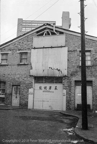 This building has a particular interest for vegetarians and vegans, for it was here that Lung Kee set up a company, possibly in the early 1960s, for producing bean sprouts and tofu. According to the 'History of Soy in the UK and Ireland (1613-2015)', Craig Sams who set up the macrobiotic natural foods restaurant 'Seed' in Westbourne Terrace in December 1967 (as well as Whole Earth Foods, Ceres and later Green & Blacks Organic Chocolate, more to my taste) used to buy fresh tofu and mung bean sprouts from Lung Kee here and stated that the business run by Lung Kee employed about 15 West Indian/Jamaican women who made the foods. Among Sams's customers were The Beatles, The Rolling Stones and Yoko Ono. I think Lung Kee went out of business before I took this picture, and was probably the Lung Kee Limited listed in the London Gazette as having been dissolved in 1977.