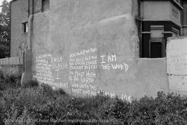 On another visit to St Agnes Place I photographed this lengthy Rastafarian text on the wall.