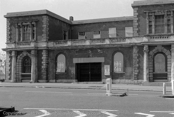 Even at full size, it's hard to read the flyposters on the building but they appear to be for 'Circus Holiday' in Woolwich, with a large clown's face. The clown looks similar to those on other Circus Holiday posters on the continent, one of which describes it as 'Nederlands nieuwe SUPER CIRCUS', and it also gave performances in other places in the UK in 1981, including the Lea Bridge Road and Dumfries.