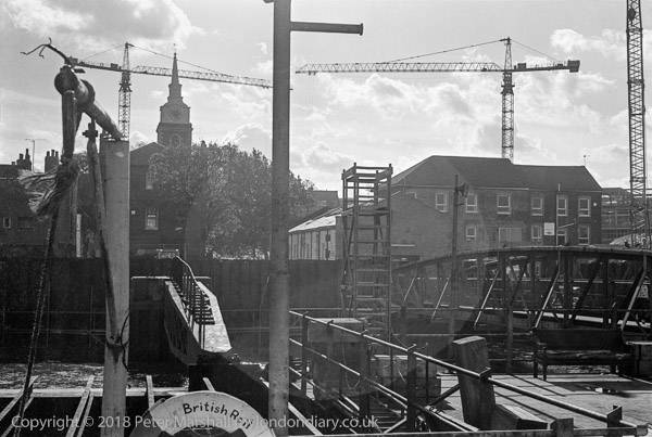 The ferry I was standing on was I think still at the pier, and at right you can see the walkway onto it. The ferry then ran from opposite St George's Church and next to the New Falcon pub, its back at the left of the picture. The pub has reverted to one of its old names as the Rum Puncheon and though the pier is still there as West Street Pier the ferry now runs from the Town Pier a short distance downriver. British Rail disappeared with privatisation and after several changes it is now operated by Jetstream Tours working for the local councils on each bank. I forget how much we paid for tickets in 1981, but the charges now seem fairly reasonable given the time and cost of any alternative route, and with a bus pass I could travel free (except before 9.30 on weekdays), so perhaps it is time for another trip.