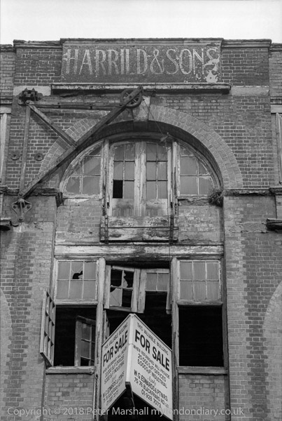 In a third image I used a longer lens to look more closely at the most interesting part of the image, the name board for Harrild & Sons, the well known printers and suppliers of printing machinery and the for sale notice.