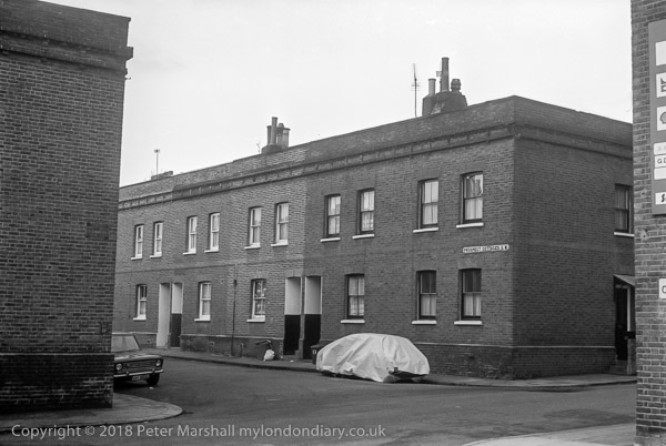 Although this and some other pictures from the area appear in my contact sheets for 1982, I'm not sure whether these and the pictures previously posted were actually taken in December 1981 or January 1982 or whether I made two visits to the area in both months.  I used to develop black and white films in batches of perhaps six at a time which might mean they were not developed for a few weeks after taking them, and if a film was not completed on a particular trip it would stay in the camera to be finished on the next occasion I photographed. In later I marked up the contact sheets much more carefully, including actual dates and usually street names and grid references to the nearest 100metres abd sometimes other details I thought relevant.