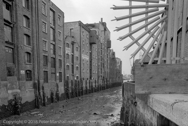 St Saviour's Dock from Dockhead, Bermondsey, Southwark 34f-33: dock, warehouses, river, Thames
