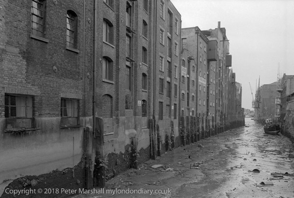 St Saviour's Dock from Dockhead, Bermondsey, Southwark 34f-35: dock, warehouses, river, Thames