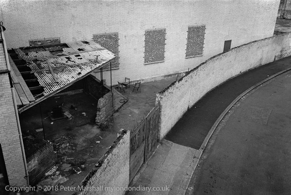 Industrial site from the Silvertown Bypass, Silvertown, Newham. 1983 37a-23 works, street,