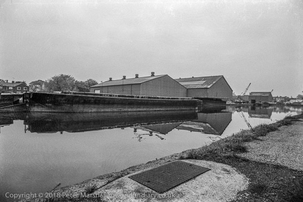 Canal Basin, Grand Union Canal, Brentford, Hounslow. 1983 37i-43 canal, barges, sheds,