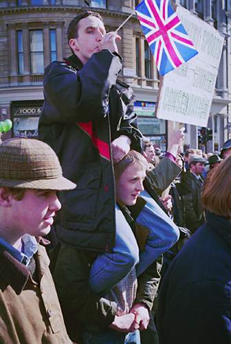 In general these seemed to be people who were not used to demonstrating, more at home working on the farm. There was little pantomime or singing or chanting. One of the major underlying issues over which many farmers feel resentment is mad cow disease.