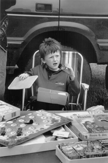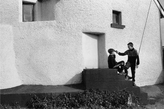 | So I was losing my confidence, and in my experience that is a good time to go on a workshop! I chose Homer Sykes' workshop because it was entitled "People in a Landscape" and because he is someone who has recorded the diversity of British life (including street life) with wit and subtlety over a 30 year career. A member of Network Photographers, he has recently produced a remarkable book of photographs capturing the mysterious landscapes of Celtic Britain. (Homer Sykes, Celtic Britain, Weidenfeld & Nicolson, 1997) | |||